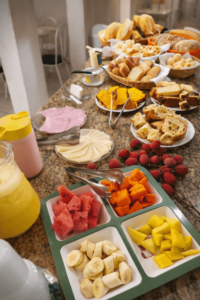 Oferecemos um café da manhã preparado com carinho, com opções frescas e saborosas para você começar o dia com energia.